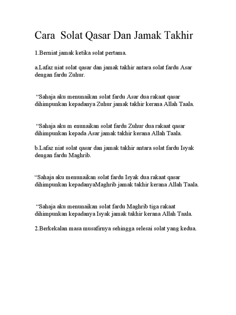 Doc Solat Qasar Dan Jamak Mohamad Noor Izzwan Sensei Academia Edu